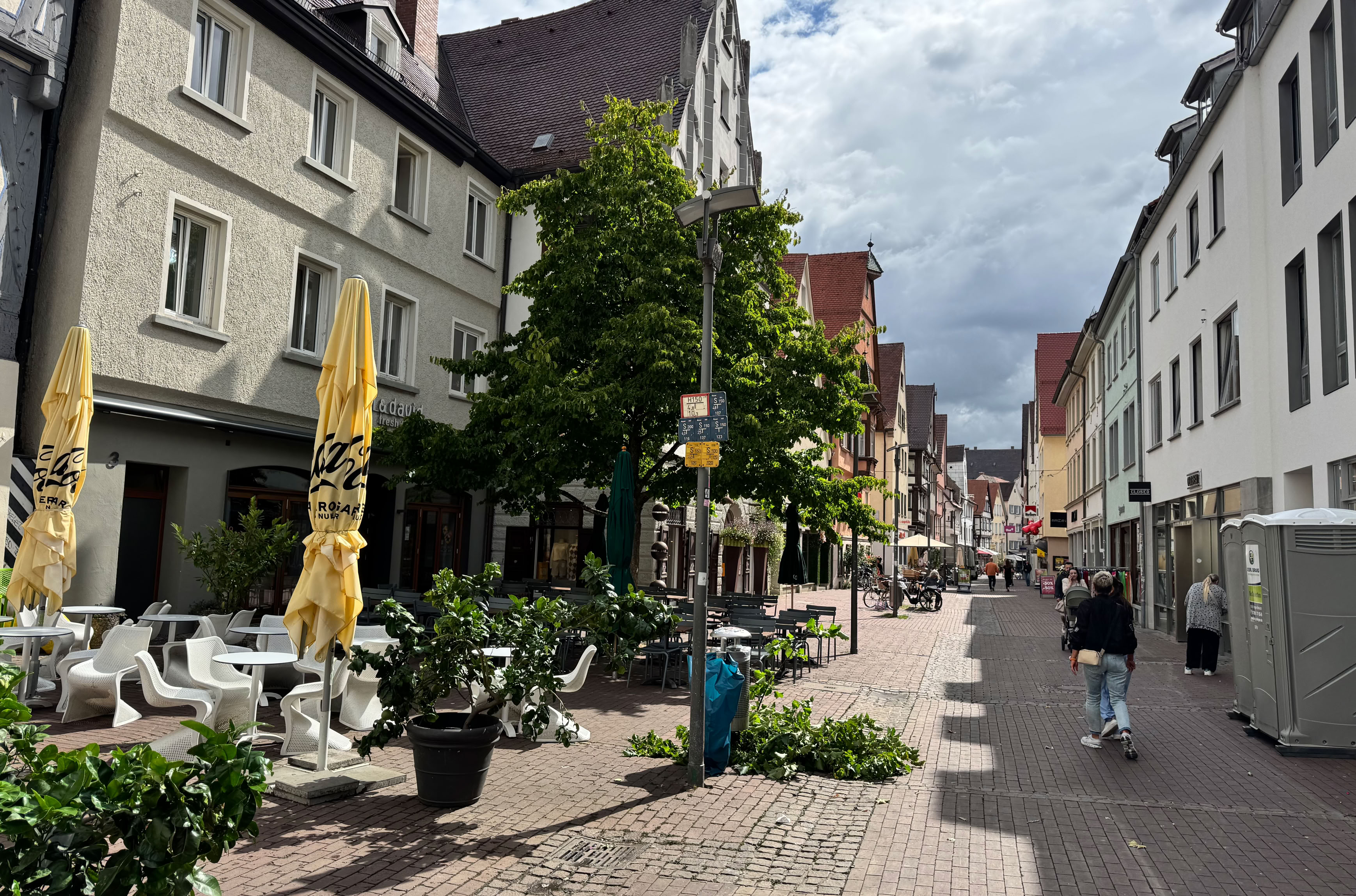 So um 14:00 Uhr möchten wir in Bad Wurzach eine Kleinigkeit Essen. Wir finden zwar ein kleines Cafe/Restaurant mit Garten, aber um diese Zeit gibt es hier nichts mehr außer Eisbecher und Kuchen. Auch komisch.