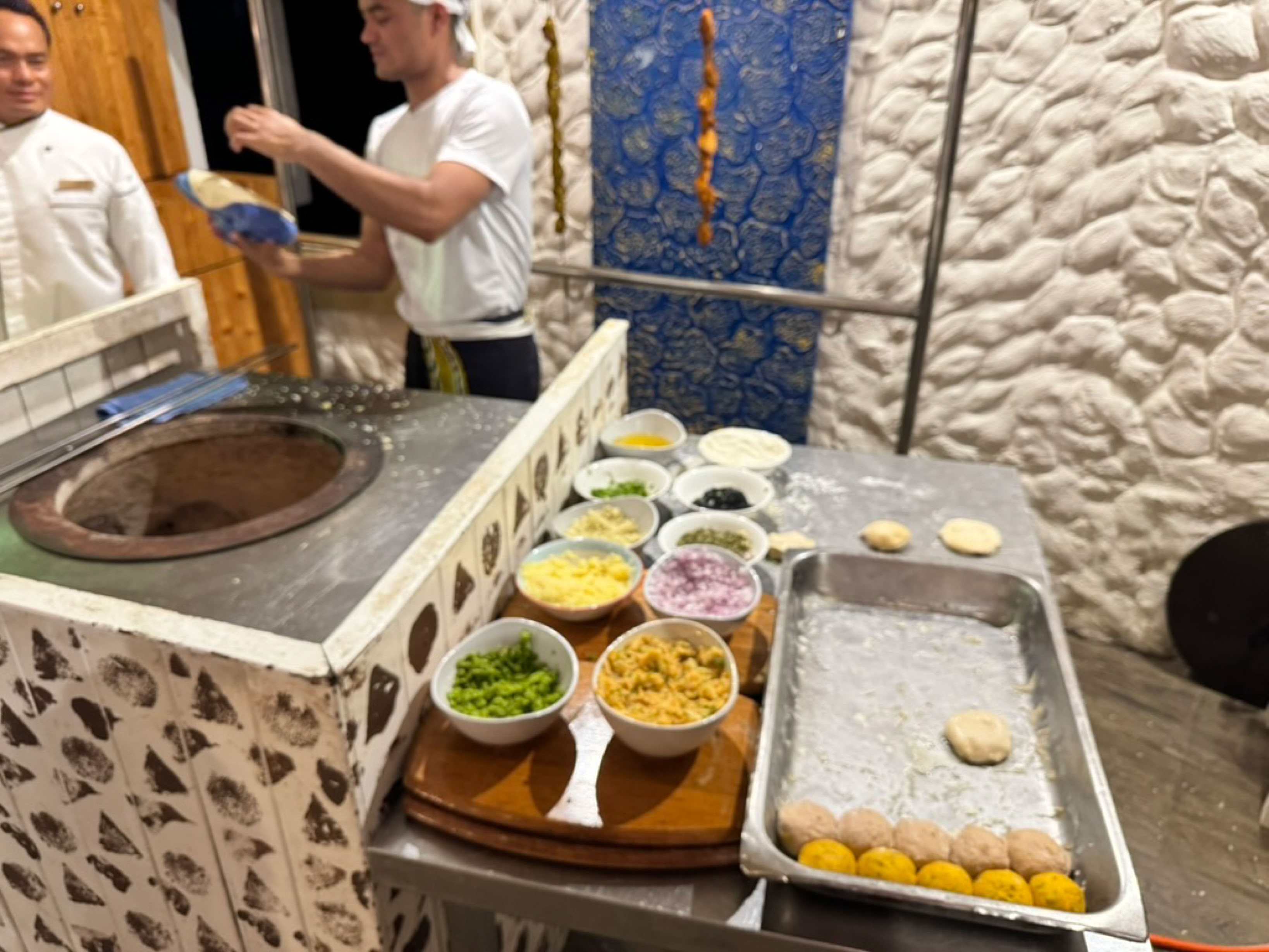 Was ich echt interessant fand, war das Backen von Naan-Brot (Indisches Brot). In der Zeit die wir hier waren, haben sie das zweimal direkt am Buffet gemacht.
