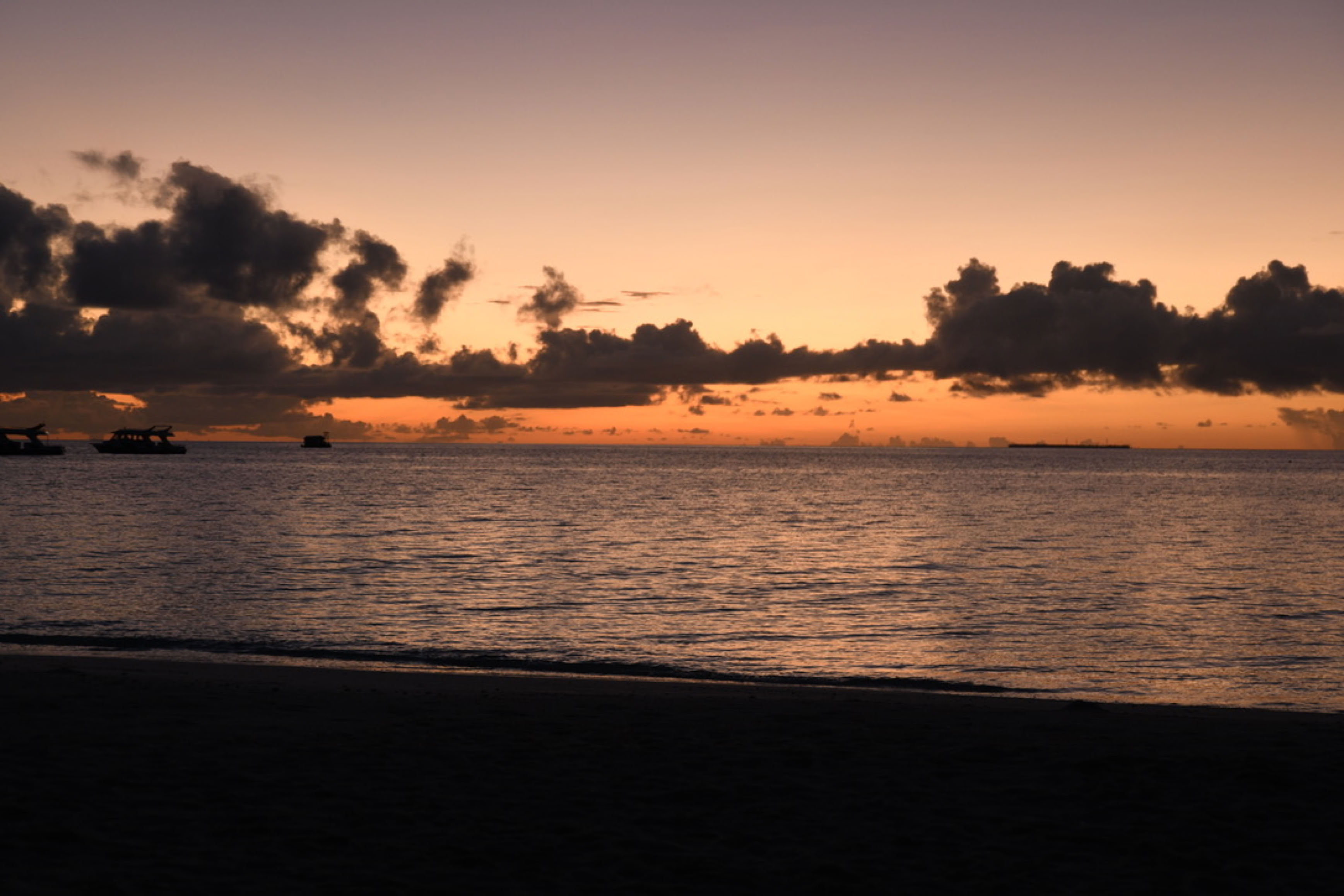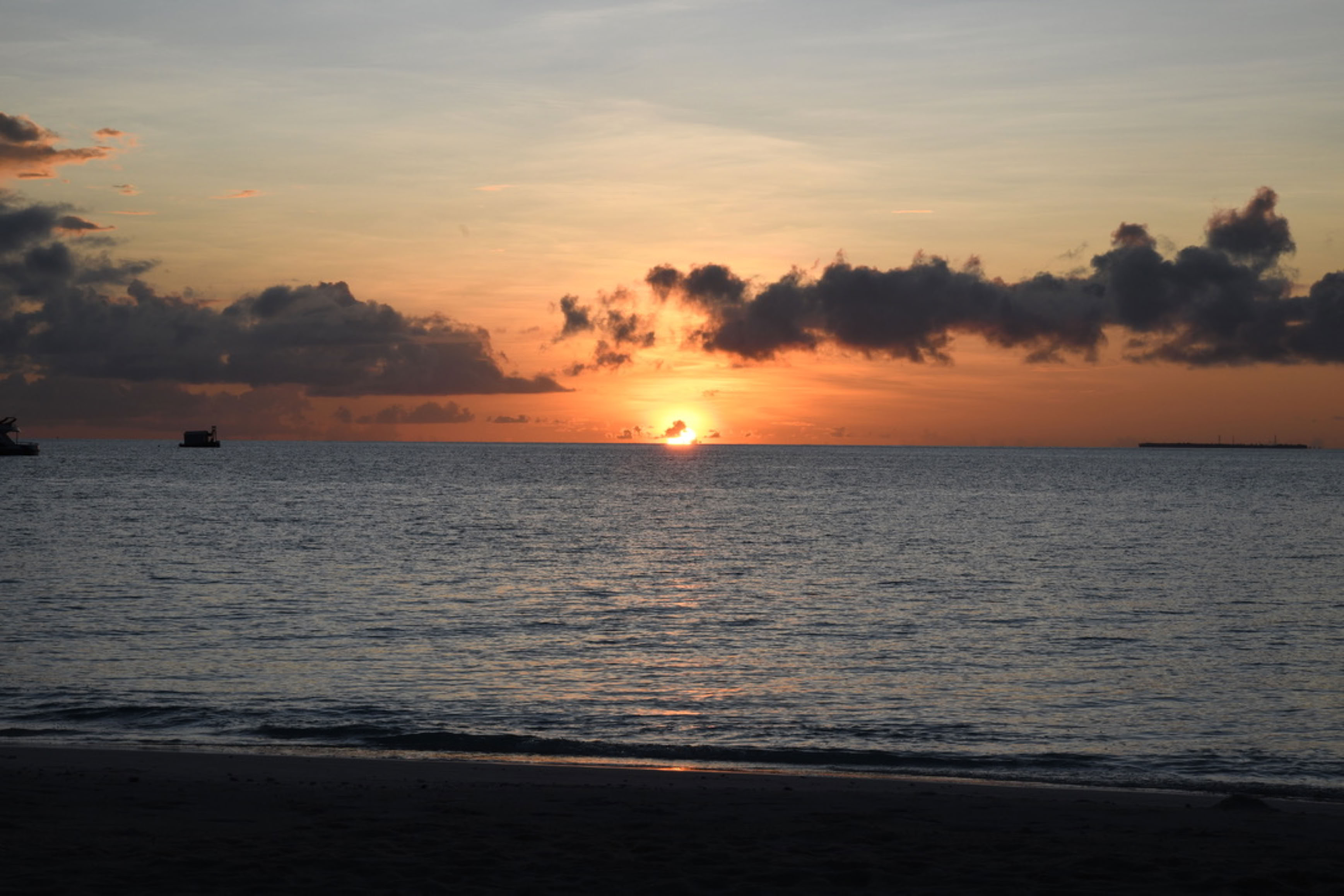 Den Sonnenuntergang beobachten wir von unseren Liegen am Strand.