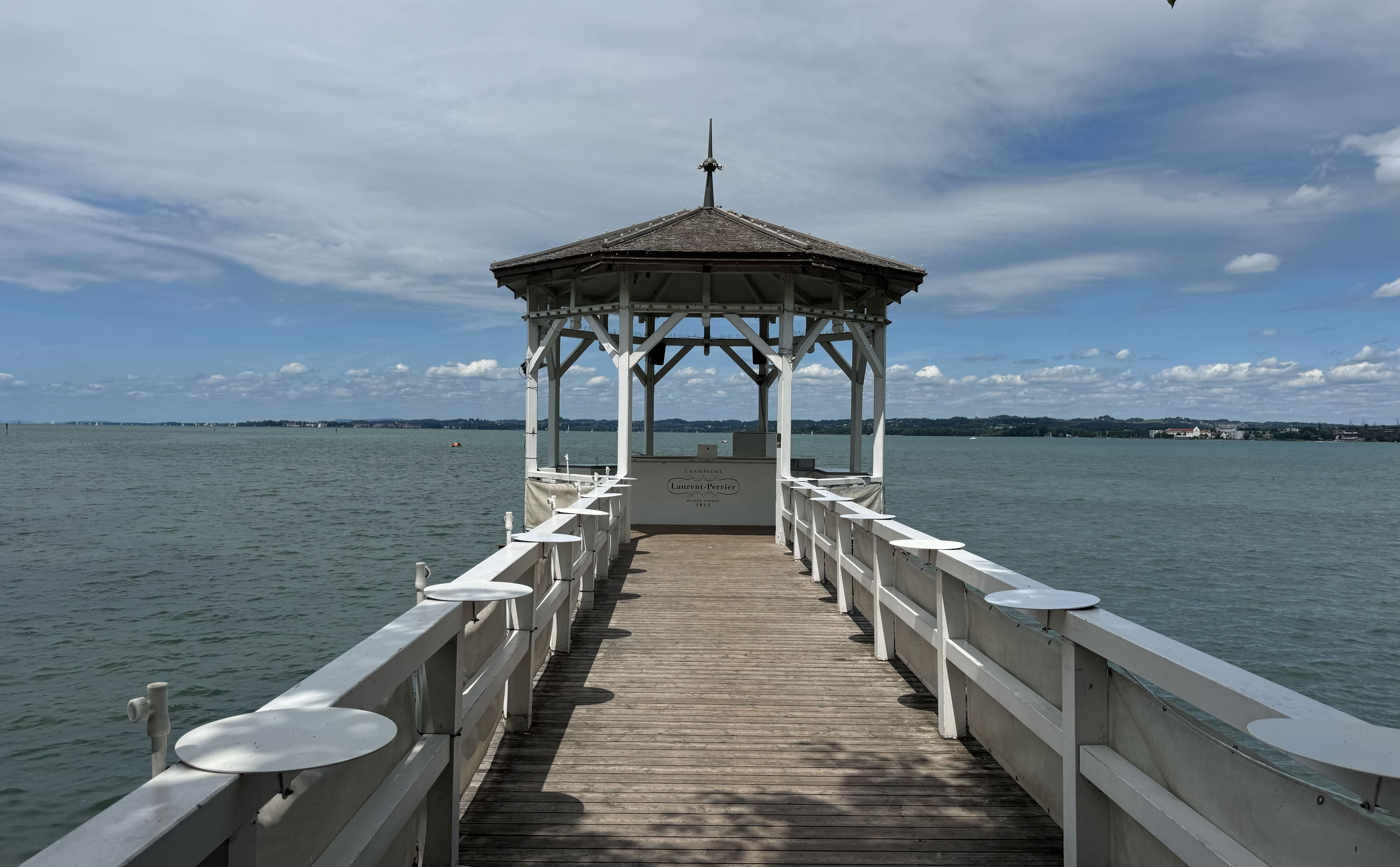 Im Pier 69 bekommen wir einen schönen Platz (natürlich vorher reserviert) mit Aussicht auf den Bodensee.