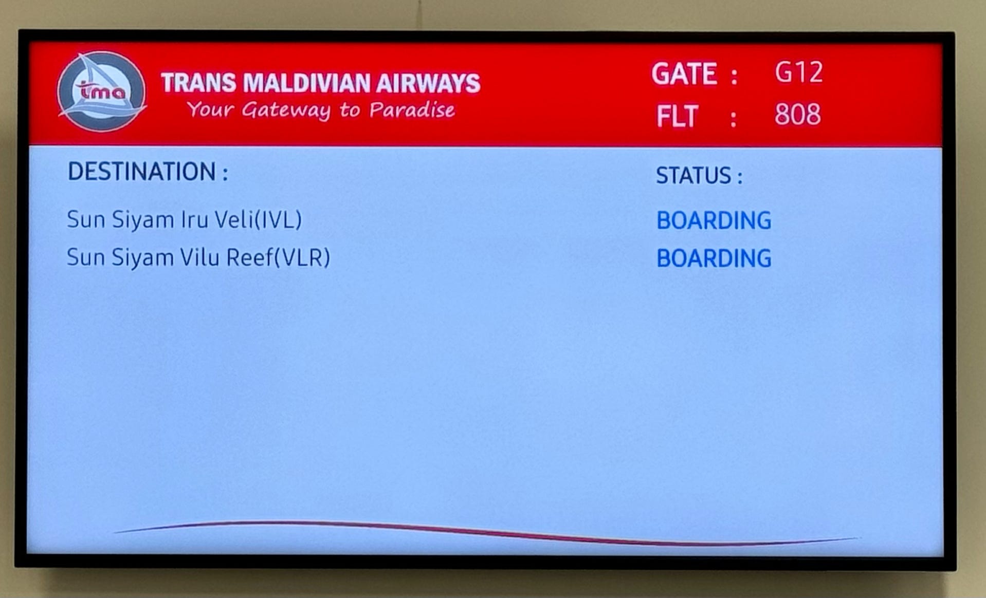 Im ersten Stock hat Sun Siyam Resort eine eigene Lounge. Sehr nett mit schönem Blick auf die Flugzeuge.