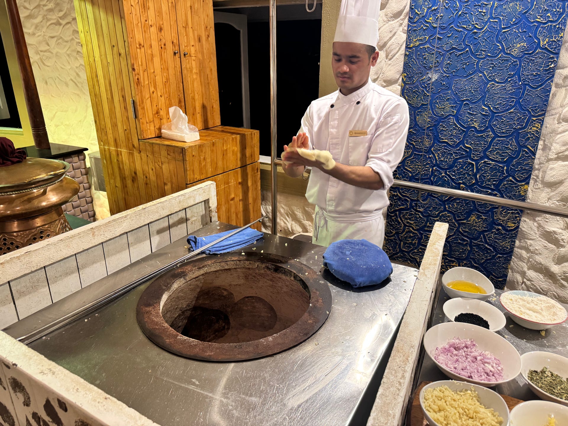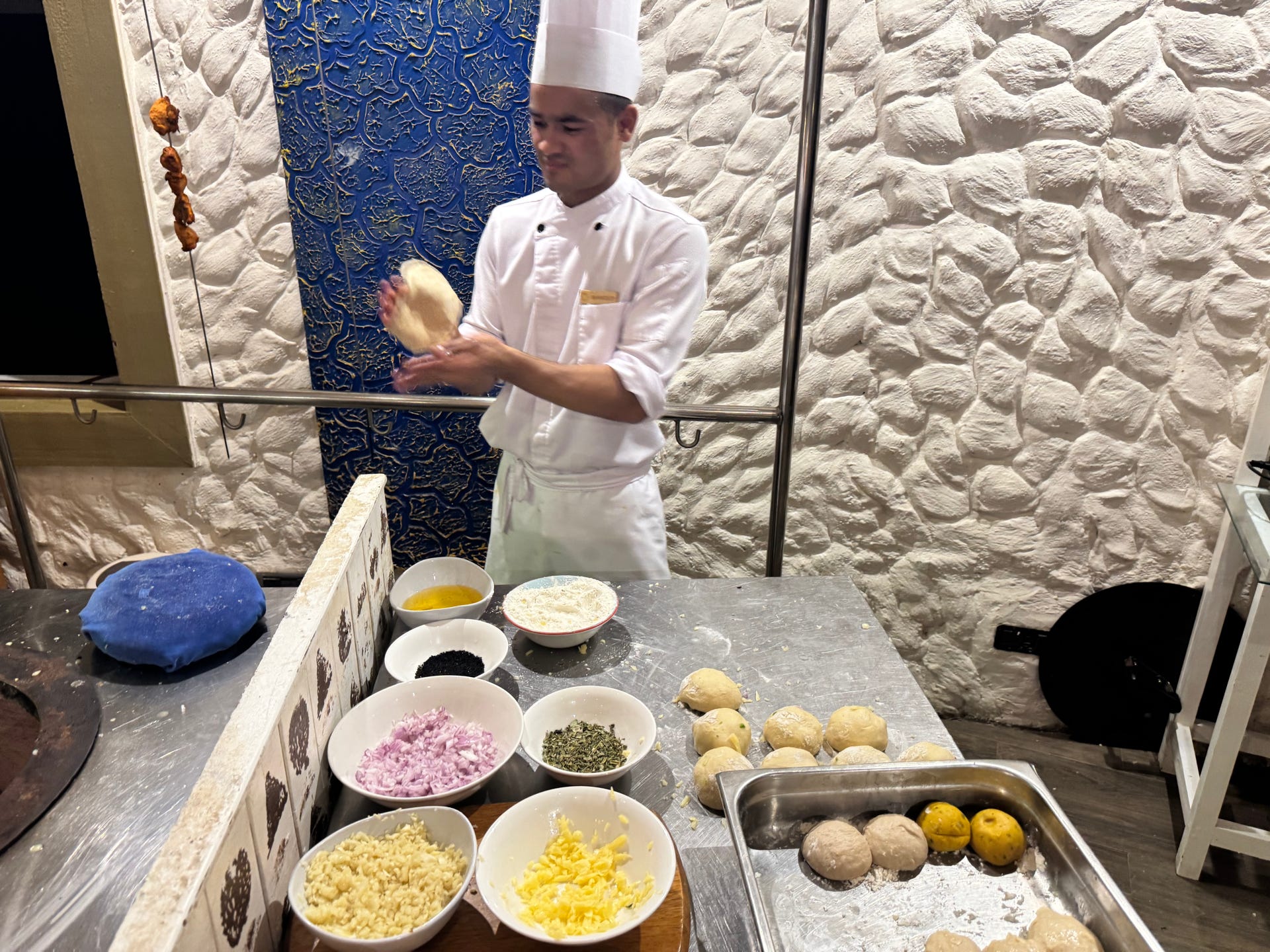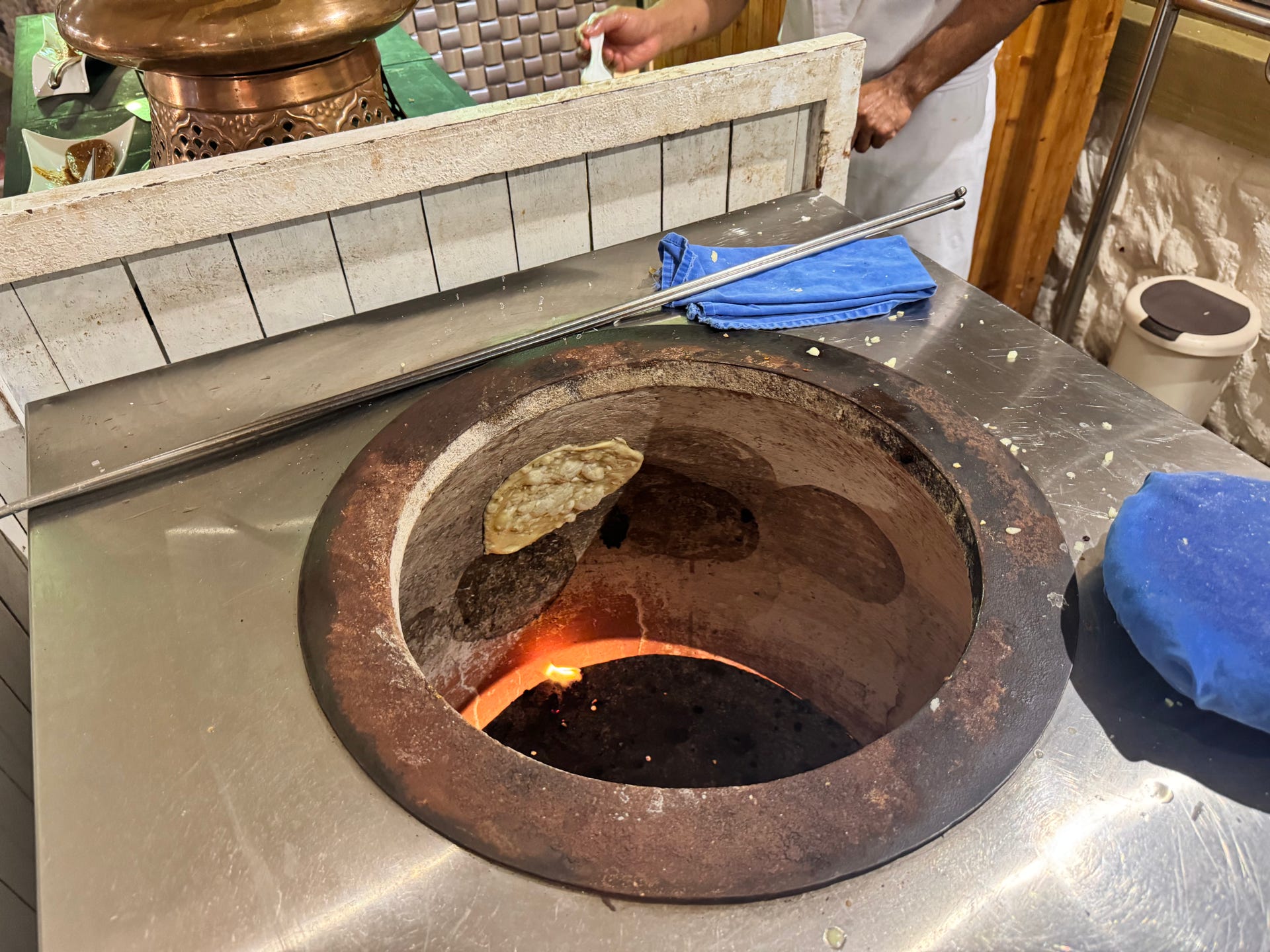 Was ich echt interessant fand, war das Backen von Naan-Brot (Indisches Brot). In der Zeit die wir hier waren, haben sie das zweimal direkt am Buffet gemacht.